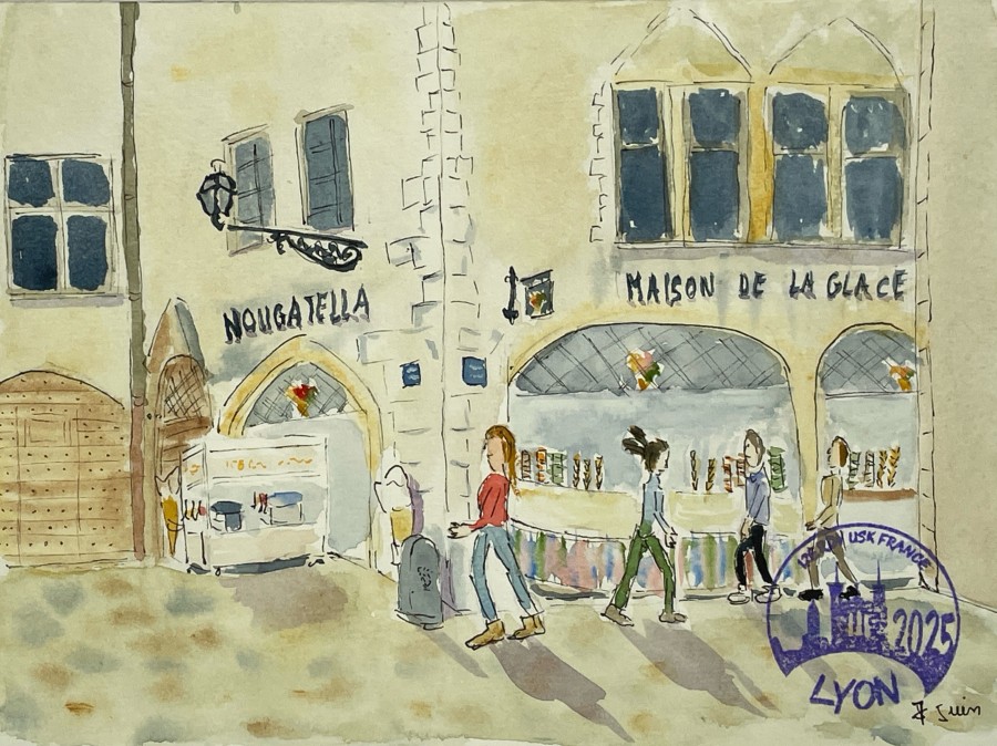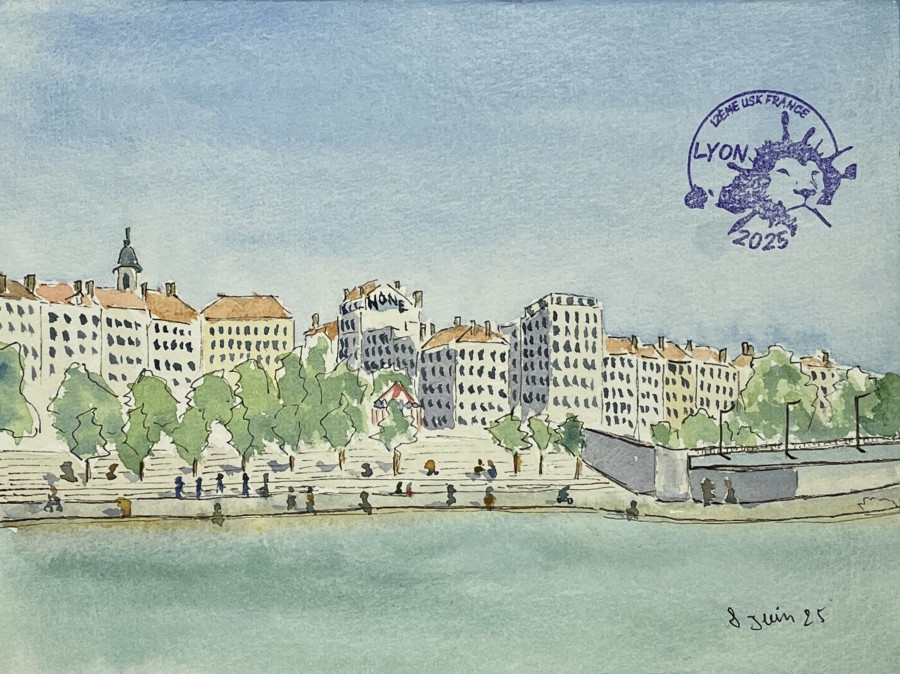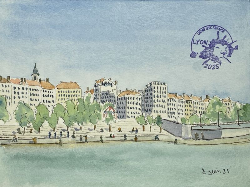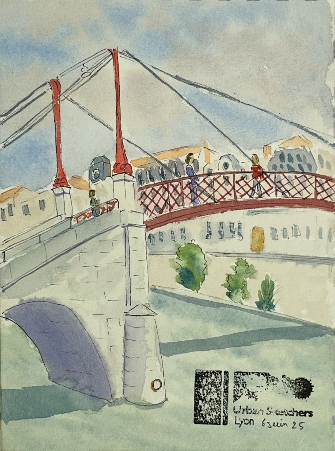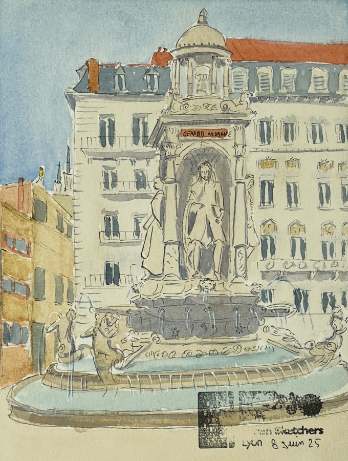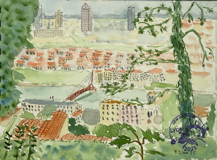 Une rencontre nationale des Urban Sketchers (croqueurs urbains) a eu lieu à Lyon, du 6 au 9 juin 2025. Environ 1 000 personnes ont participé à l’événement pour croquer Lyon pendant quatre jours. L’organisation était au top, avec un parcours différent proposé chaque jour. J’ai pu découvrir cette belle ville.