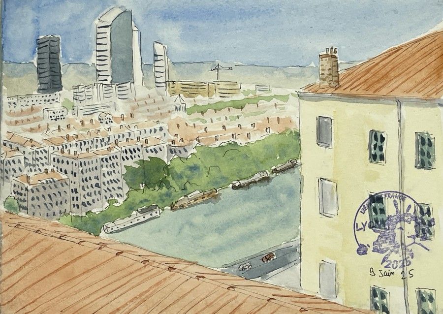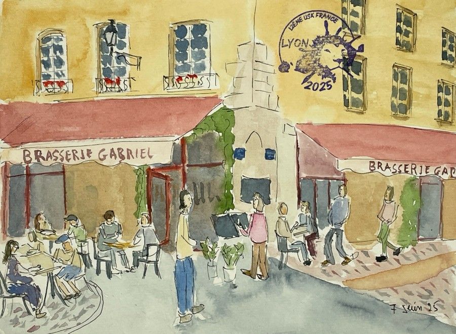 Une rencontre nationale des Urban Sketchers (croqueurs urbains) a eu lieu à Lyon, du 6 au 9 juin 2025. Environ 1 000 personnes ont participé à l’événement pour croquer Lyon pendant quatre jours. L’organisation était au top, avec un parcours différent proposé chaque jour. J’ai pu découvrir cette belle ville.